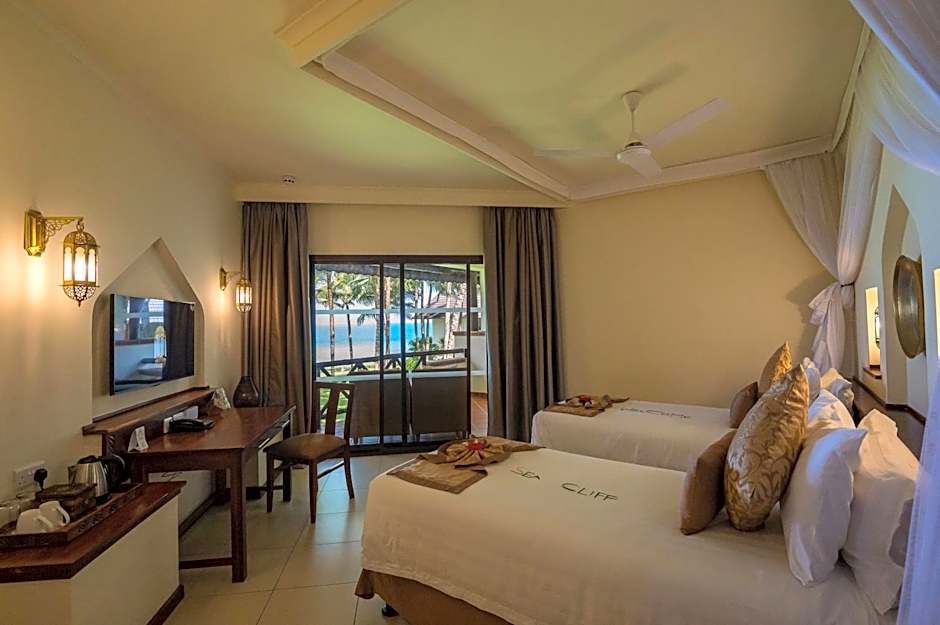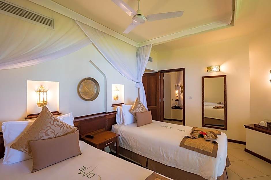 This spacious room features 2 balconies with views of the Indian Ocean, a flat-screen TV with satellite channels and an electric kettle. An private bathroom with a bathrobe, slippers and a spa bath overlooking the ocean is also included.